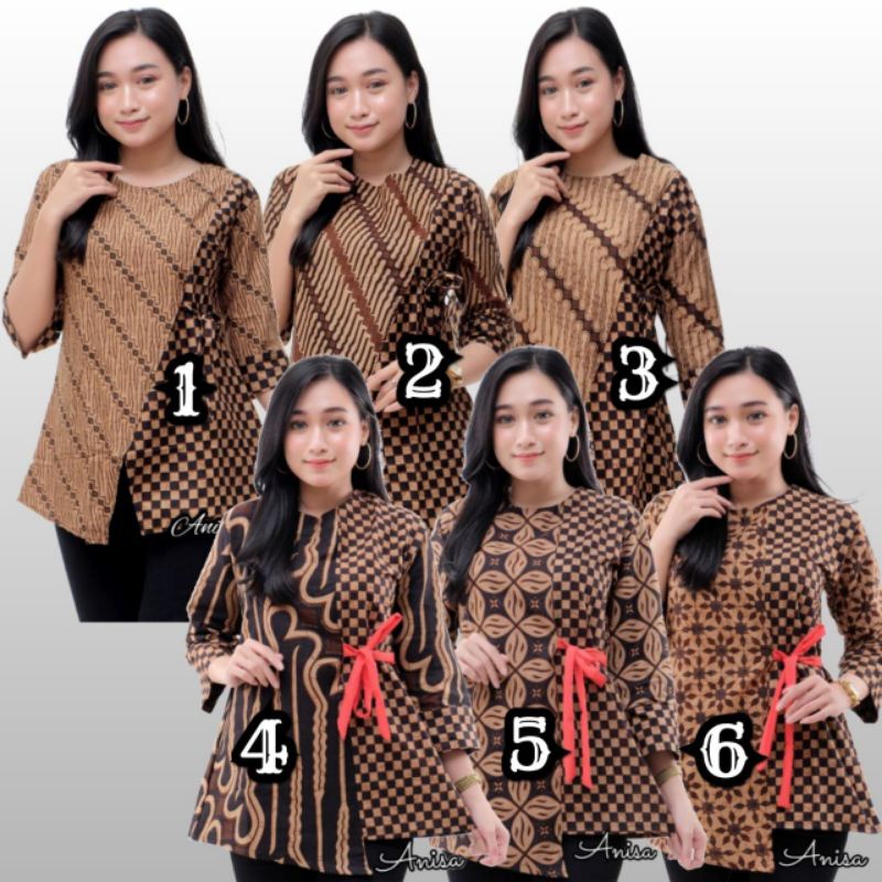 Name: Batik Dolby Dolbi Dobby Doby Batik Wanita Atasan Lengan 7/8 Dan Pendek Model Kombinasi Warna Coklat