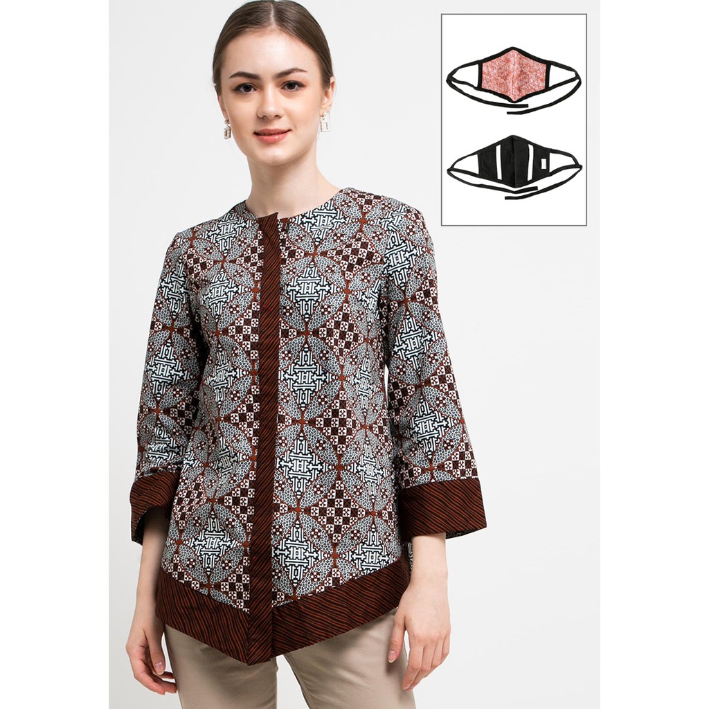 - Blouse batik print bernuansa two tone yang elegan untuk acara formal