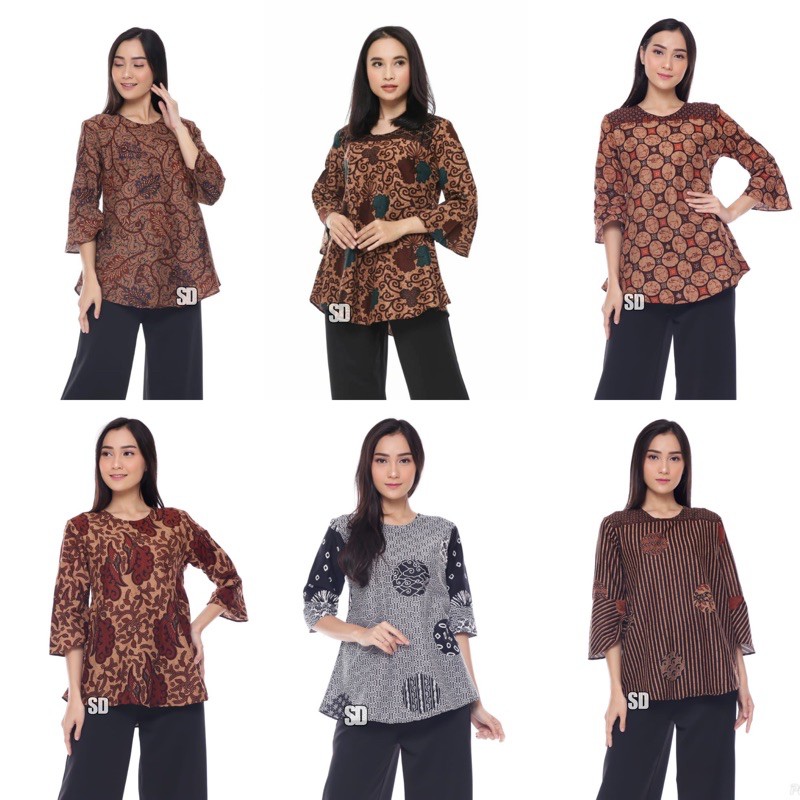 Name: Batik Wanita Modern Atasan Blouse Batik Serdadu Batik Kantor Sd 011 Size S-m-l-xl-xxl-3l-4l-5l