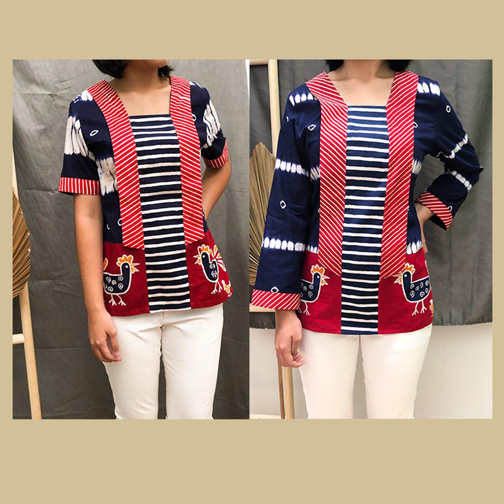 Atasan model Kutubaru shibori dikombinasi dengan batik ayam
