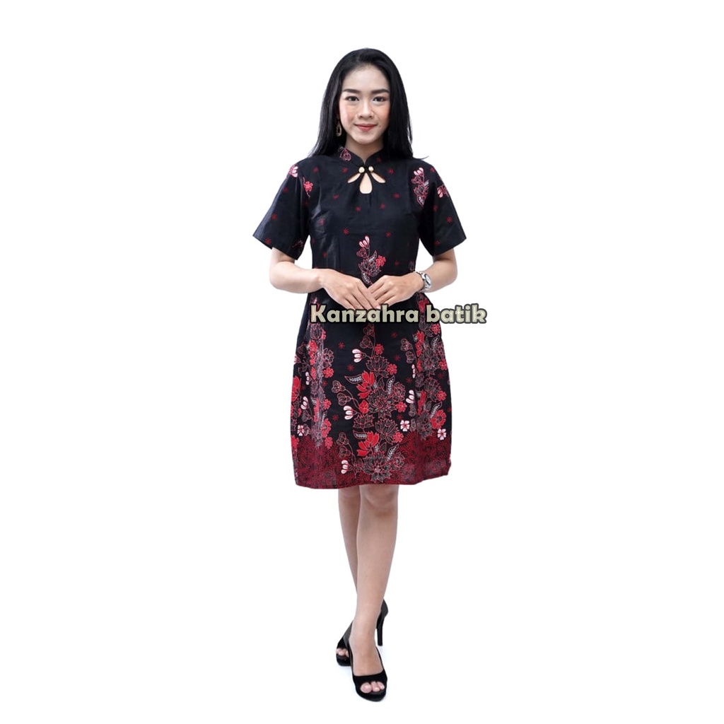 Grosir Pakaian W di Kota Bitung Dress Batik Wanita Atasan Bahan Katun Size Lengkap S-m-l-xl-xxl-3l-4l-5l dari Kanzahra Batik Kota Pekalongan
