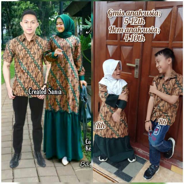 Model : Couple Batik Keluarga yang terdiri dari gamis ibu,gamis anak, kemeja lengan pendek anak, dan kemeja lengan pendek ayah.